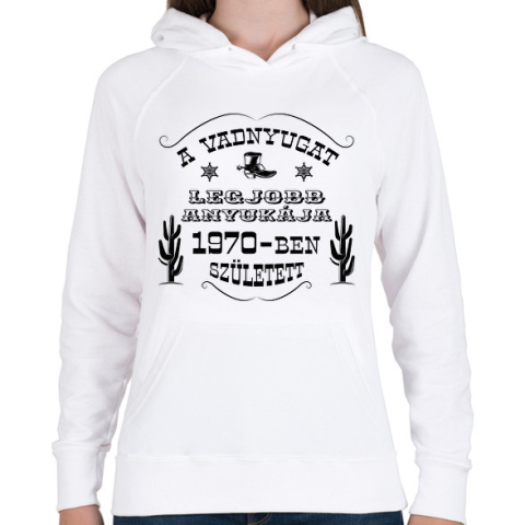 1 kép PRINTFASHION Vadnyugat legjobb anyukája - Évszámmal - Női kapucnis pulóver - Fehér