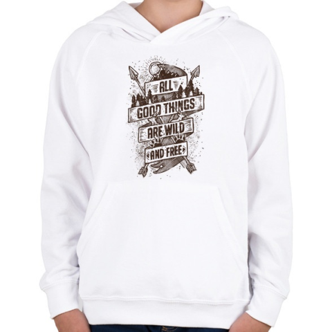 1 kép PRINTFASHION Vadon és szabadon - Gyerek kapucnis pulóver - Fehér