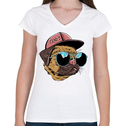 1 kép PRINTFASHION Vagány kutya - Női V-nyakú póló - Fehér