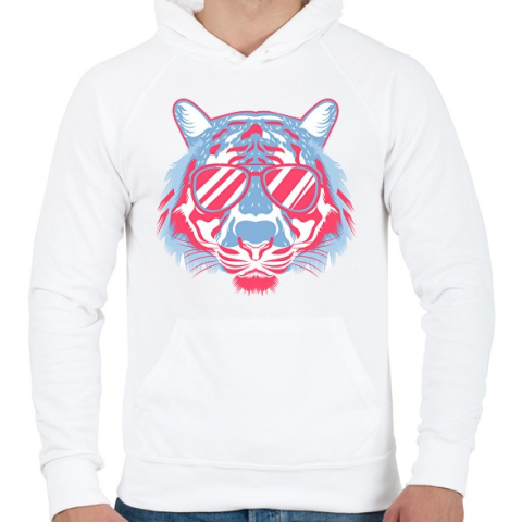 1 kép PRINTFASHION Vagány tigris - Férfi kapucnis pulóver - Fehér