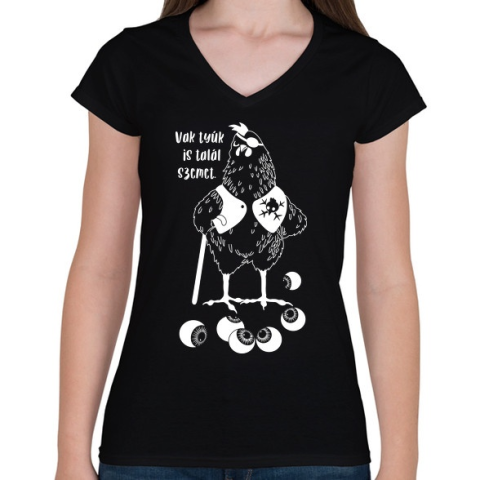 1 kép PRINTFASHION Vak tyúk is talál szemet - Női V-nyakú póló - Fekete