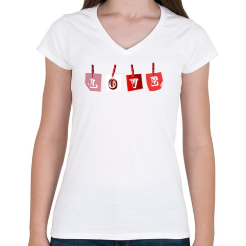 1 kép PRINTFASHION Valentin nap - Női V-nyakú póló - Fehér