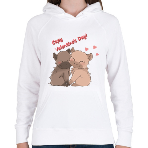 1 kép PRINTFASHION Valentin napi capybara - Női kapucnis pulóver - Fehér