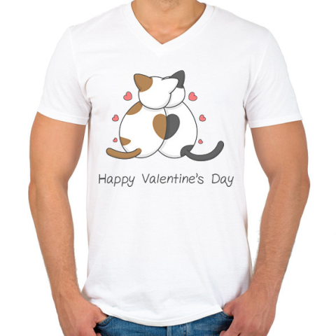 1 kép PRINTFASHION Valentin napi cicák - Férfi V-nyakú póló - Fehér
