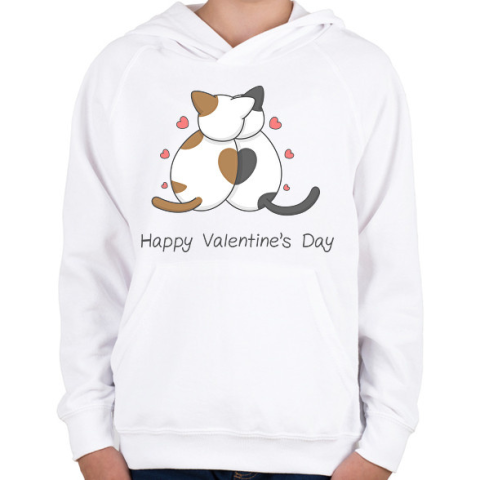 1 kép PRINTFASHION Valentin napi cicák - Gyerek kapucnis pulóver - Fehér