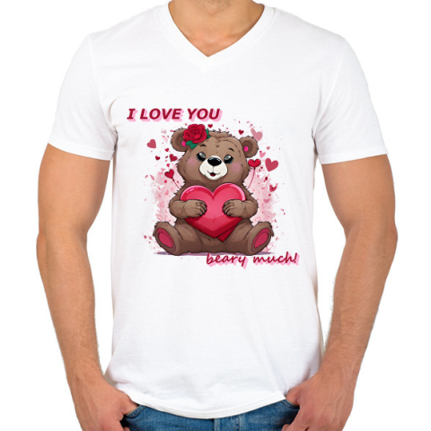 1 kép PRINTFASHION valentin napi mackó - Férfi V-nyakú póló - Fehér