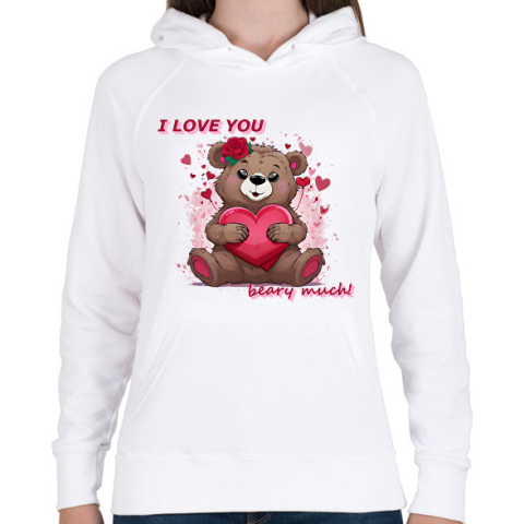1 kép PRINTFASHION valentin napi mackó - Női kapucnis pulóver - Fehér