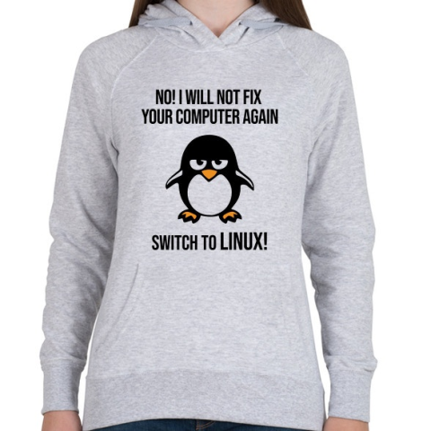 1 kép PRINTFASHION Válts linuxra - Női kapucnis pulóver - Sport szürke