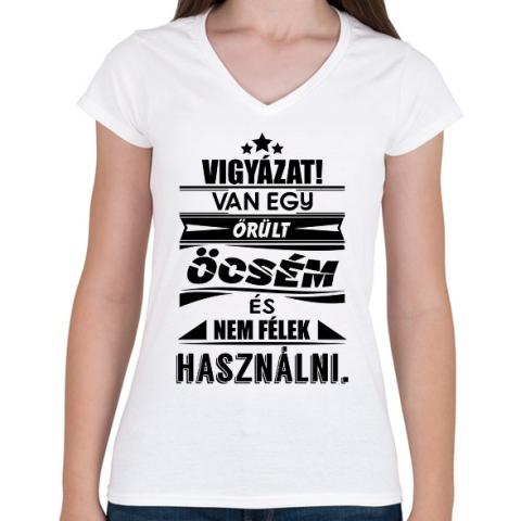 1 kép PRINTFASHION Van egy őrült öcsém - Női V-nyakú póló - Fehér