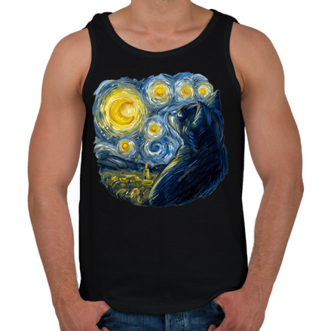 1 kép PRINTFASHION Van Gogh cica , Starry night by Vincent - Férfi atléta - Fekete