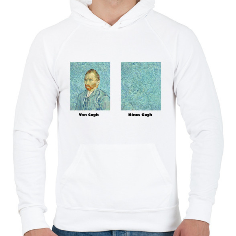 1 kép PRINTFASHION Van Gogh - nincs Gogh - Férfi kapucnis pulóver - Fehér