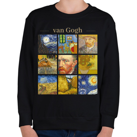 1 kép PRINTFASHION Van Gogh - részletek - Gyerek pulóver - Fekete