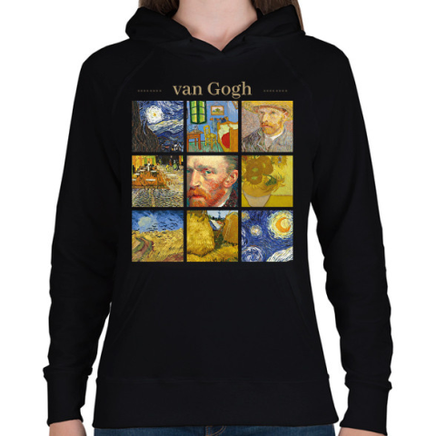 1 kép PRINTFASHION Van Gogh - részletek - Női kapucnis pulóver - Fekete