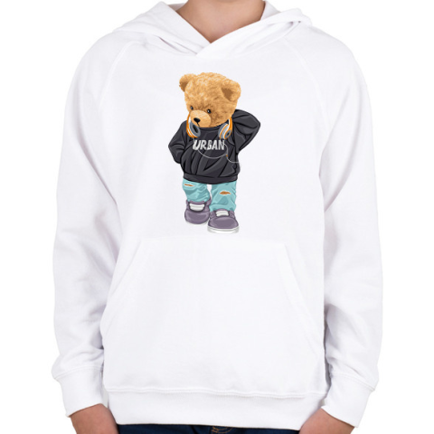 1 kép PRINTFASHION Városi maci - Gyerek kapucnis pulóver - Fehér