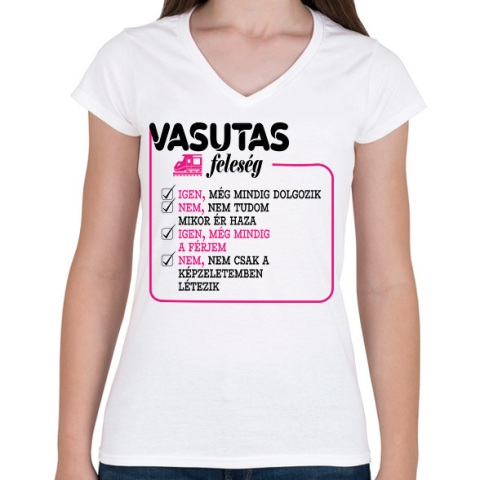 1 kép PRINTFASHION Vasutas feleség - Női V-nyakú póló - Fehér