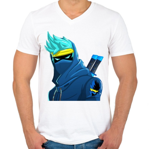 1 kép PRINTFASHION Vector Fortnite Ninja - Férfi V-nyakú póló - Fehér