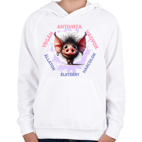 1 kép PRINTFASHION Vegán aktivista póló - Gyerek kapucnis pulóver - Fehér