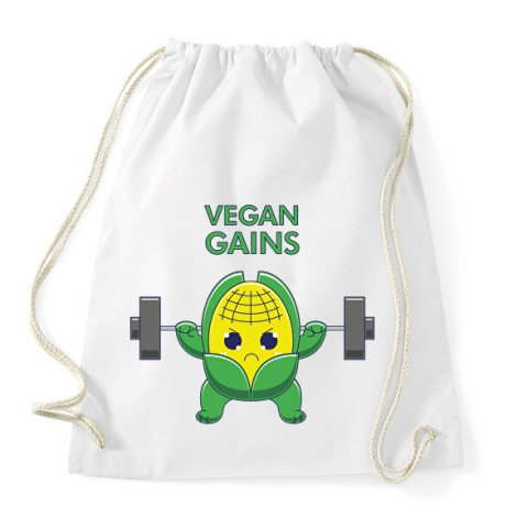1 kép PRINTFASHION Vegan Gains - Sportzsák, Tornazsák - Fehér