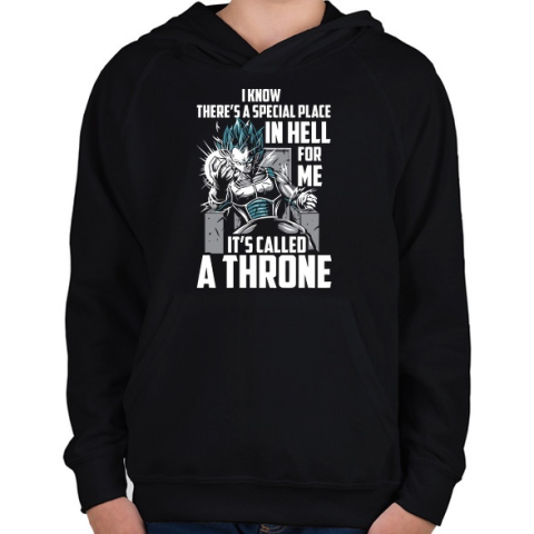 1 kép PRINTFASHION Vegita Trón - Gyerek kapucnis pulóver - Fekete