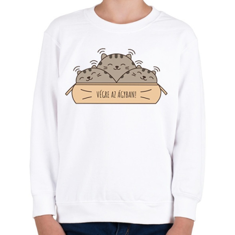 1 kép PRINTFASHION Végre az ágyban - Cicák - Gyerek pulóver - Fehér