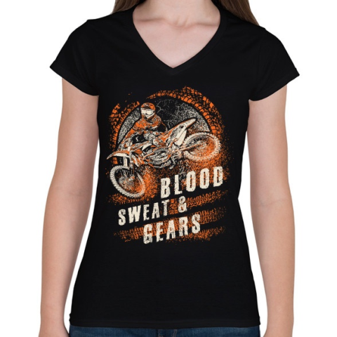 1 kép PRINTFASHION Vér, veríték és sebesség - Női V-nyakú póló - Fekete