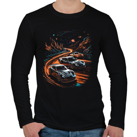 1 kép PRINTFASHION Verseny az éjszakában - Férfi hosszú ujjú póló - Fekete
