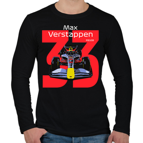 1 kép PRINTFASHION Verstappen 33 autóversenyző - fehér felirat - Férfi hosszú ujjú póló - Fekete