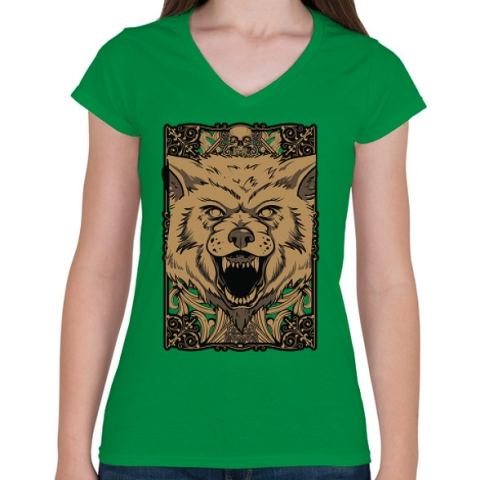 1 kép PRINTFASHION Vérszomjas farkas - Női V-nyakú póló - Zöld