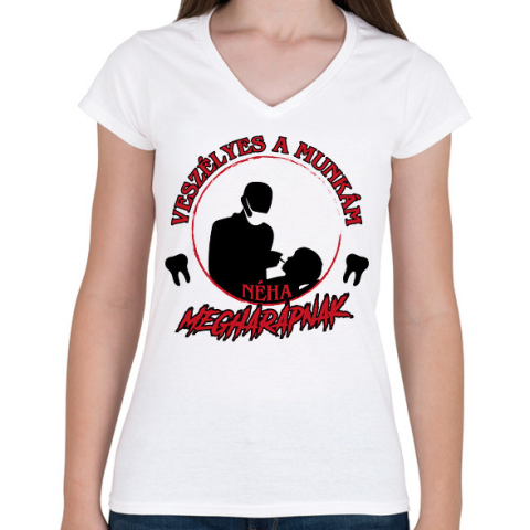 1 kép PRINTFASHION Veszélyes a munkám - Női V-nyakú póló - Fehér