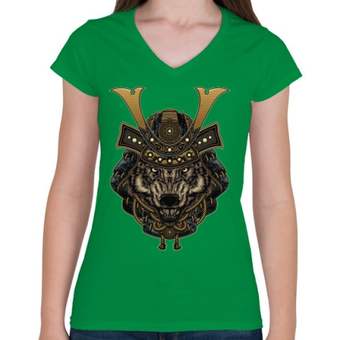 1 kép PRINTFASHION Veszélyes szamuráj - Női V-nyakú póló - Zöld