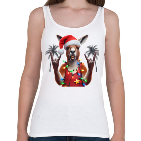 1 kép PRINTFASHION Vicces ausztrál karácsonyi rocker party kenguru - Mikulás ruhában - Női atléta - Fehér