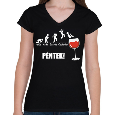 1 kép PRINTFASHION Vicces boros hét - Női V-nyakú póló - Fekete