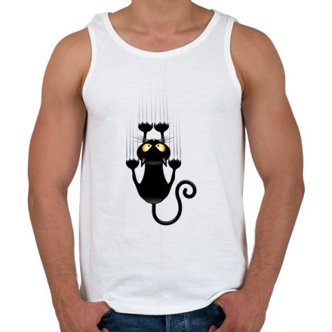 1 kép PRINTFASHION Vicces cicás póló - Férfi atléta - Fehér