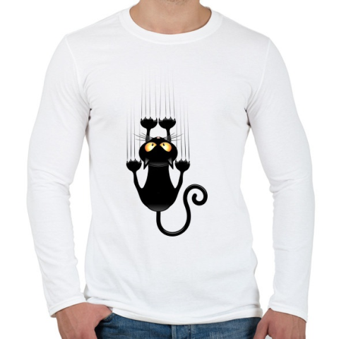 1 kép PRINTFASHION Vicces cicás póló - Férfi hosszú ujjú póló - Fehér