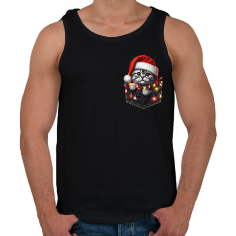 1 kép PRINTFASHION Vicces karácsonyi cica zsebben - mikulás sapkában - Férfi atléta - Fekete