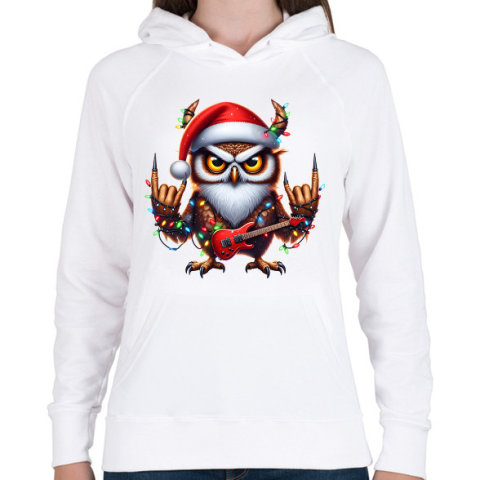 1 kép PRINTFASHION Vicces karácsonyi gitáros rocker party bagoly - Női kapucnis pulóver - Fehér