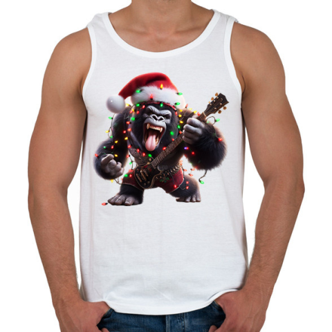 1 kép PRINTFASHION Vicces karácsonyi gitáros rocker party gorilla - Férfi atléta - Fehér
