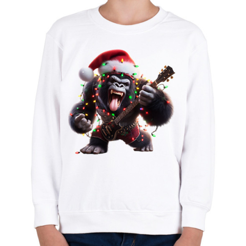 1 kép PRINTFASHION Vicces karácsonyi gitáros rocker party gorilla - Gyerek pulóver - Fehér