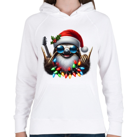 1 kép PRINTFASHION Vicces karácsonyi gitáros rocker party lajhár - Női kapucnis pulóver - Fehér