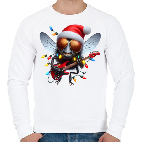 1 kép PRINTFASHION Vicces karácsonyi gitáros rocker party légy / bogár - Férfi pulóver - Fehér