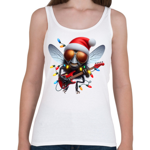 1 kép PRINTFASHION Vicces karácsonyi gitáros rocker party légy / bogár - Női atléta - Fehér