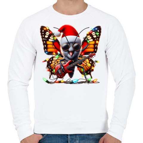 1 kép PRINTFASHION Vicces karácsonyi gitáros rocker party pillangó / lepke - Férfi pulóver - Fehér