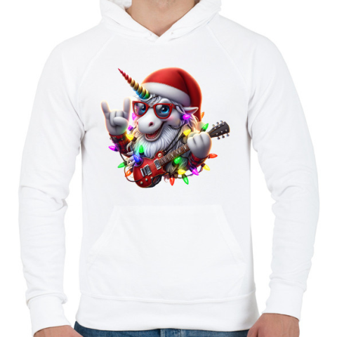 1 kép PRINTFASHION Vicces karácsonyi gitáros rocker party unikornis - Férfi kapucnis pulóver - Fehér