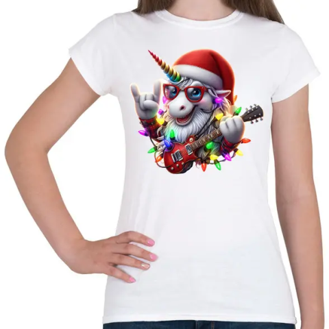 1 kép PRINTFASHION Vicces karácsonyi gitáros rocker party unikornis - Női póló - Fehér