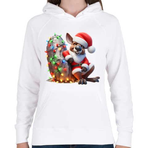 1 kép PRINTFASHION Vicces karácsonyi party kenguru - Mikulás ruhában - Női kapucnis pulóver - Fehér