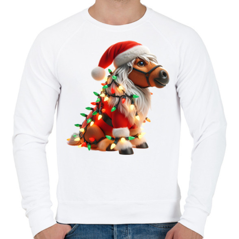 1 kép PRINTFASHION Vicces karácsonyi party ló - Mikulás ruhában - Férfi pulóver - Fehér