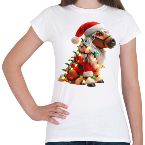 1 kép    PRINTFASHION Vicces karácsonyi party ló - Mikulás ruhában - Női póló - Fehér