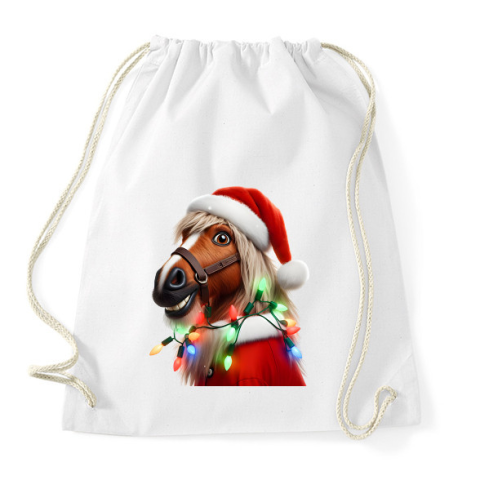 1 kép PRINTFASHION Vicces karácsonyi party ló - Mikulás ruhában - Sportzsák, Tornazsák - Fehér
