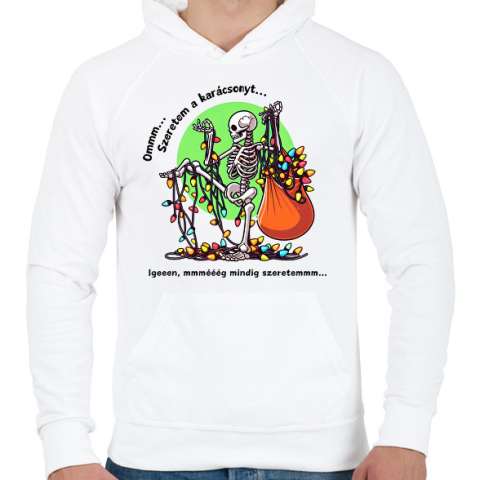 1 kép PRINTFASHION Vicces karácsonyi pulcsi / póló minta - csontváz - Férfi kapucnis pulóver - Fehér