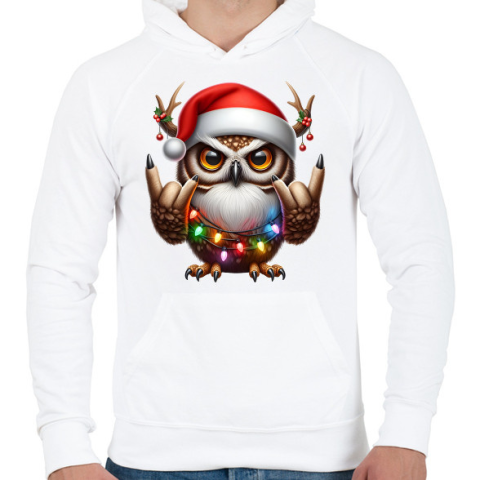 1 kép PRINTFASHION Vicces karácsonyi rocker party bagoly - Férfi kapucnis pulóver - Fehér